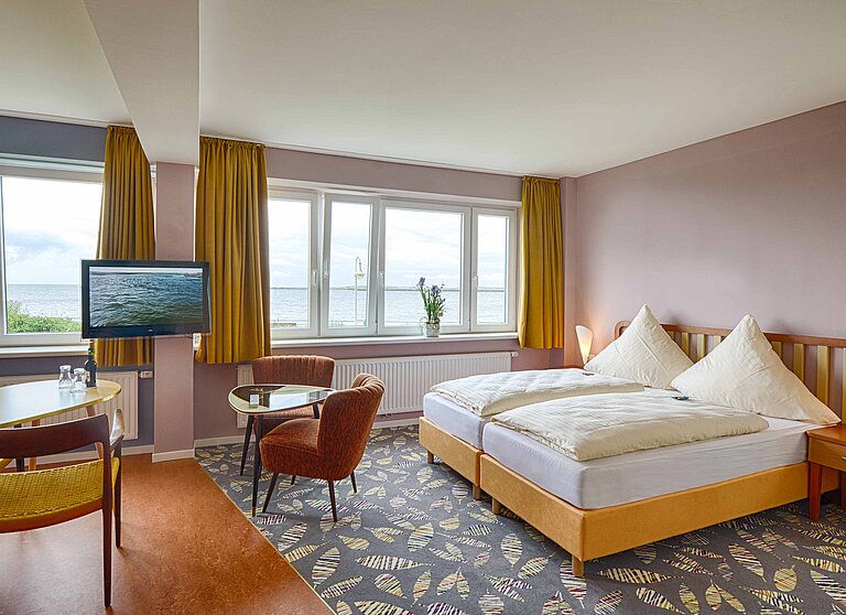 Wir möchten Ihnen einen authentischen Helgoland-Urlaub bieten. Dazu gehört, dass wir nach den aktuellen Standards modernisiert haben, Ihnen aber gleichzeitig die Traditionen, Geschichten und Formen, die Helgoland seit den 60er Jahren geprägt haben, in unserem Haus näher bringen möchten.